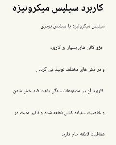 سیلیس میکرونیزه یا سیلیس پودری جزو کانی های بسیار پر کاربرد و در مش های مختلف تولید می گردد.