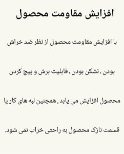 همچنین لبه های کار یا قسمت نازک محصول به راحتی خراب نمی شود.