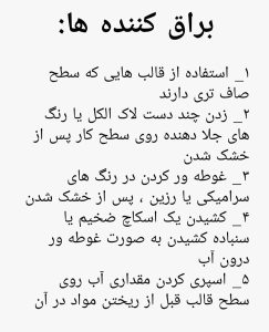 2- زدن چند دست لاک الکل یا رنگ های جلا دهنده روی سطح کار پس از خشک شدن
